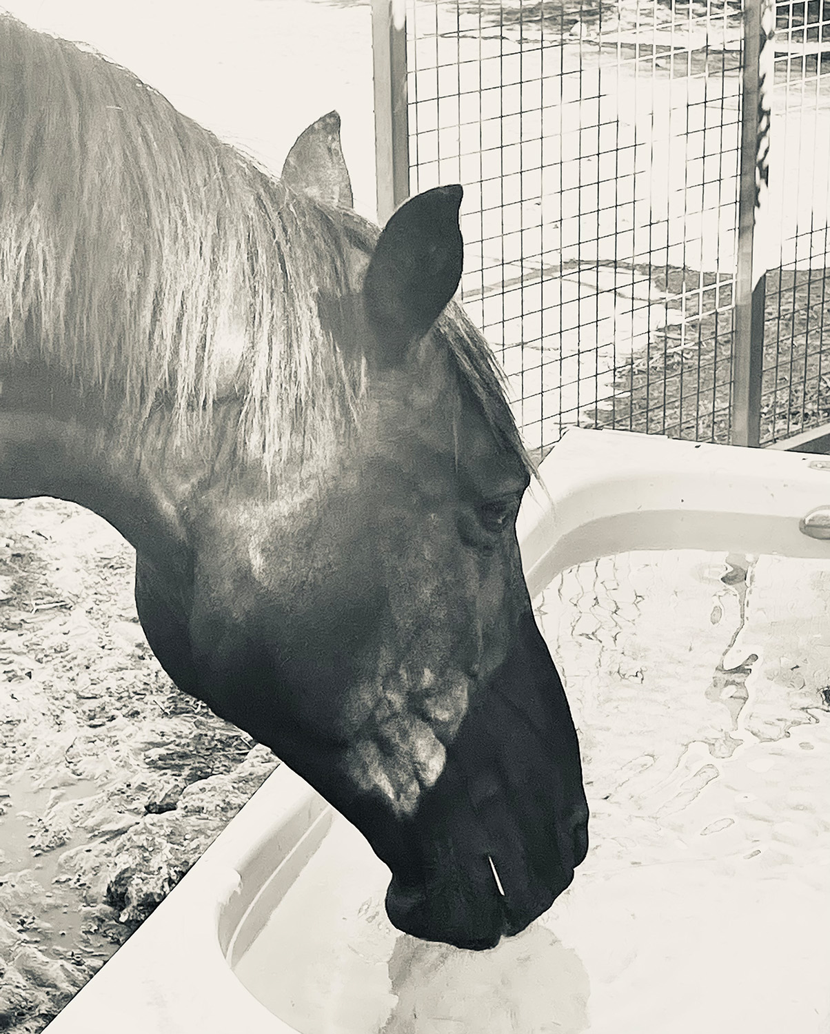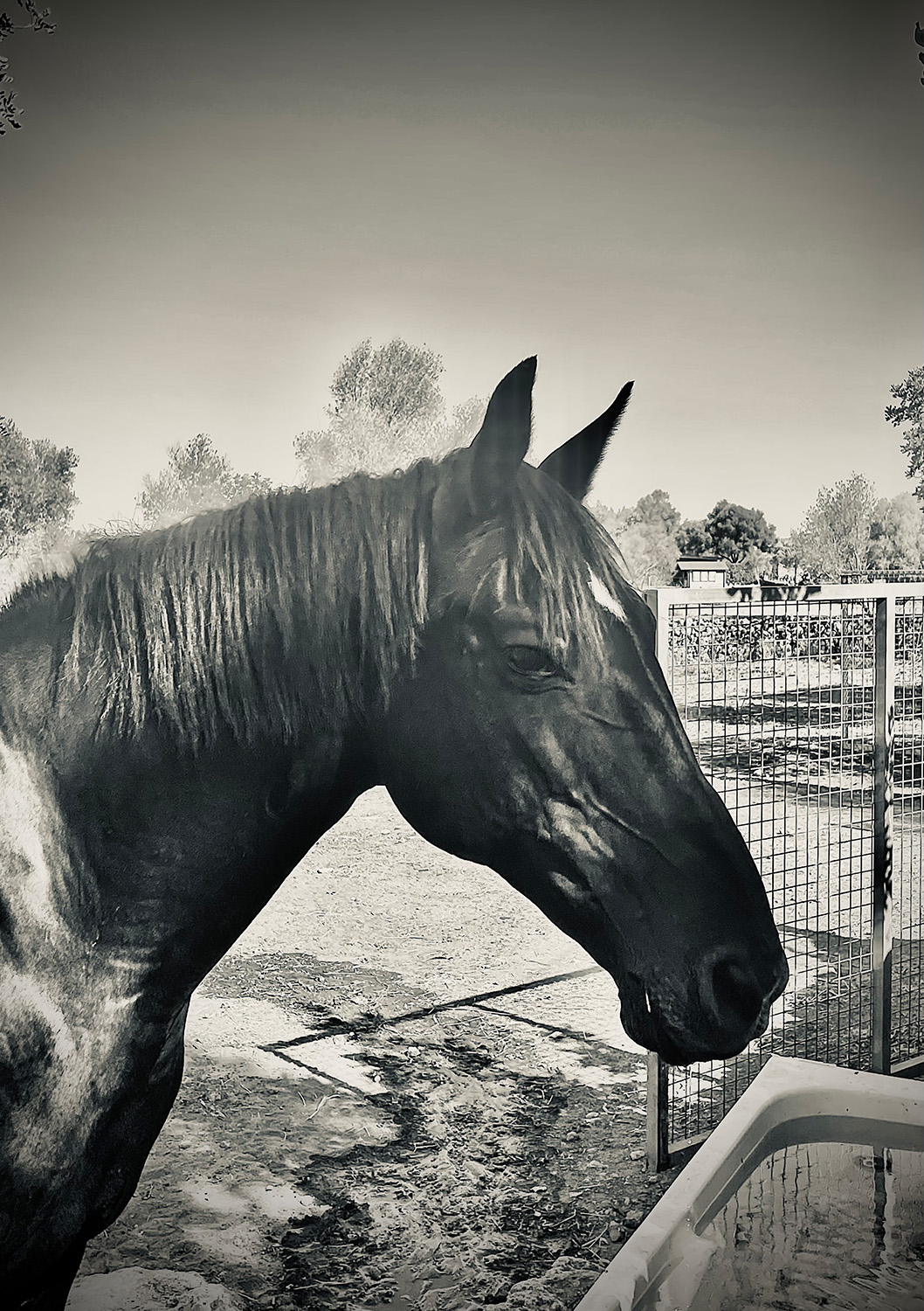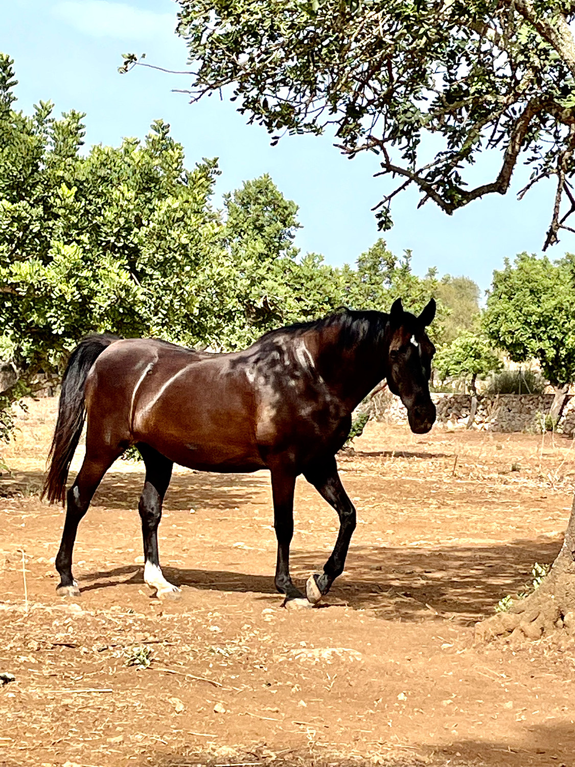 La yegua ha vivido con nosotros once años y disfruta de su merecida jubilación en libertad y dignidad. Bora tiene una personalidad muy testaruda: sigue su propio camino y no suele buscar el contacto con la gente, lo que la hace aún más especial.